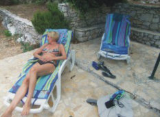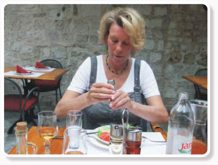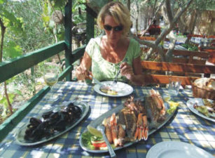 Ulla bei Ihrer liebsten Urlaubsbeschäftigung, Fisch essen.