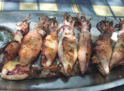Kalmare (Kalamare) vom Grill Gegrilltes Gemüse