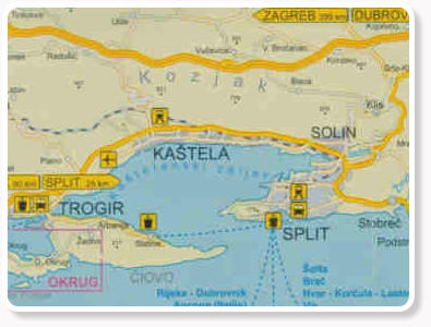 Man kann auf verschiedene Arten von Okrug Gornji nach Trogir kommen. Zu Fuß sind es ungefähr 25 Minuten bis in die Altstadt von