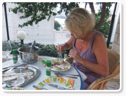 bestellt. Dazu für Ulla, Mio und mich einen hiesigen Rotwein der sehr gut