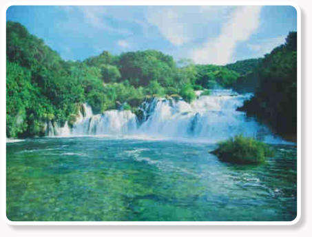 paradiesischen Flusslandschaft, die ihresgleichen vergeblich sucht. Auf dem Gebiet des Parks schlängelt sich die Krka mal durch
