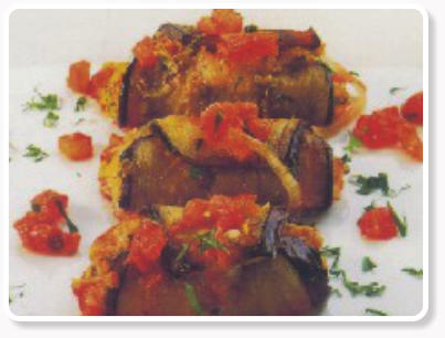 Als Beilage Involtini di melanzane con salsa di pomodoro