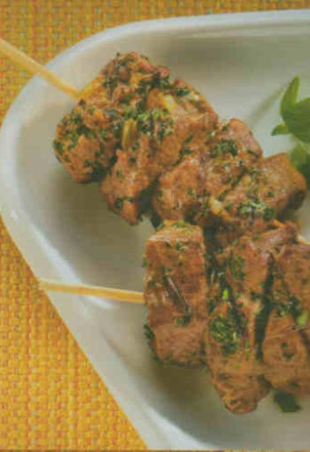 Schalotten mit kochendem Wasser überbrühen, kalt abspülen und abziehen. Alle Fleisch- würfel,
