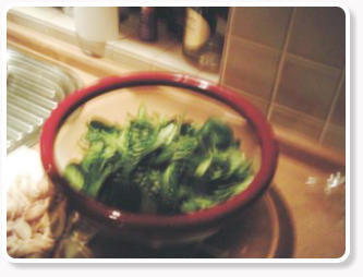 wird der Feldsalat in stehendem kalten Wasser vorsichtig aber gründlich gewaschen. Insbesondere, wenn viel Sand zwischen den