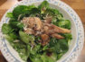 Jetzt kommt unser Gastkoch Frank ins Spiel. Den Feldsalat mit dem Dressing mischen und auf Tellern