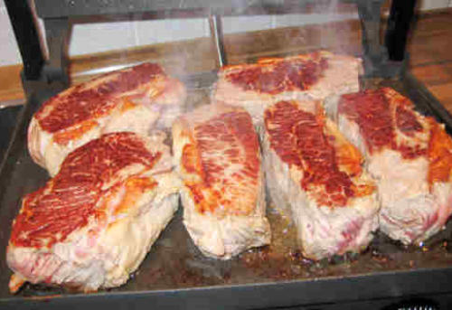 Frühstücksbrötchengriller, auch ohne dass man Fleisch hineinlegt, klasse Steaks zustande
