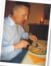 Unser heutiger Gastgeber und Chefkoch Wolfgang schaut skeptisch auf