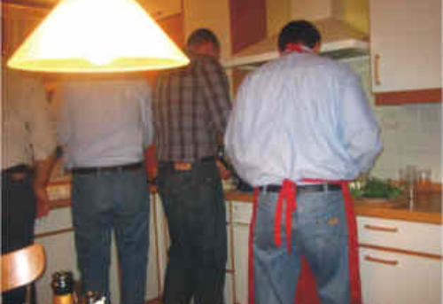 Damit war ein sehr schöner Kochabend beendet, und das Besäufnis der 6 Bräter konnte beginnen. Internationale Gäste, Tanz,