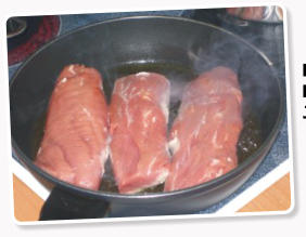Schweinefilet in Scheiben schneiden und mit der Polenta und der