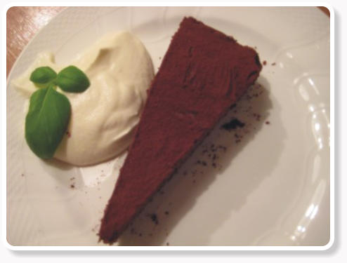Nachspeise: Schokoladenkuchen mit Schlagsahne