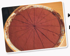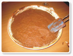Unser Schokoladenkuchen, man sehe die Feinheiten, (das grüne).