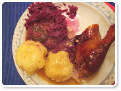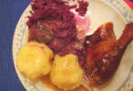 Gans, Rotkohl und Kartoffelklöße
