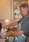 unterrühren. Unser fleißigster Koch Matthias.