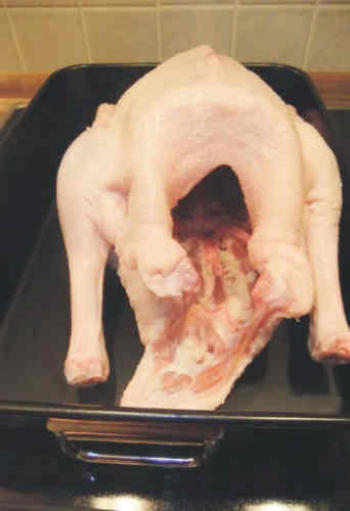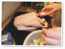 Die Gans musste zuerst einmal in den Backofen, und so ging es als erstes einmal an das Füllen der
