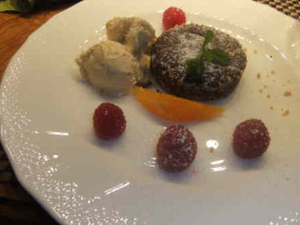 Nachspeise : Warmes Schokoladentörtchen mit Vanilleeiskugel