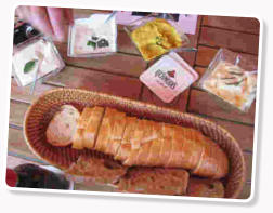 draußen auf der Terrasse mit seinen Vorvorspeisen.