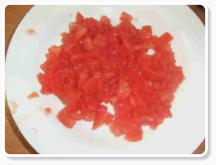 Die Basilikumblätter in feine Streifen schneiden, und zusammen mit der Tomate in die Pfanne geben und mitdünsten.