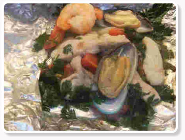 Vorspeise 2 : Meeresfrüchte al cartoccio (im Päckchen)