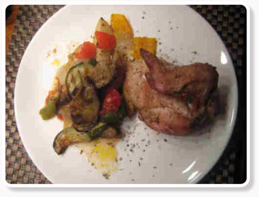 Hauptspeise : Gegrilltes Huhn auf der Bierdose mit Ratatouille aus dem Backofen
