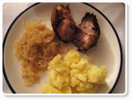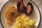 Hauptspeise : Geschmorte Schweinshaxen mit Sauerkraut und Kartoffelstampf