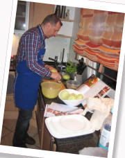 Ein Schlückchen Wein noch, eine kleine Zigarette, und schon ging es an die Zubereitung der Hauptspeise.