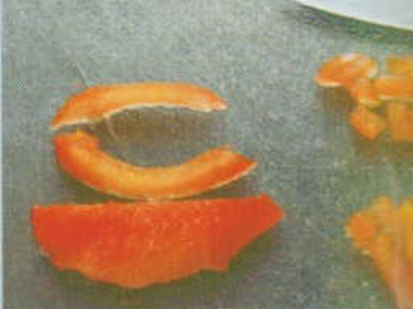 herausholen, mit kaltem Wasser abspülen und enthäuten.