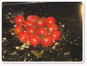 Tomaten im vorgeheizten Backofen bei 180 °C, 5 Minuten garen. Herausnehmen und wegstellen.