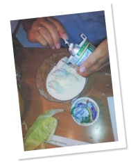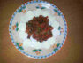 Tomaten, 6 fein gehackte Oliven, Pesto ,Tomatenketchup verrühren,abschmecken.