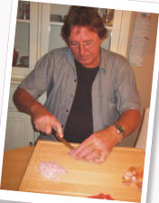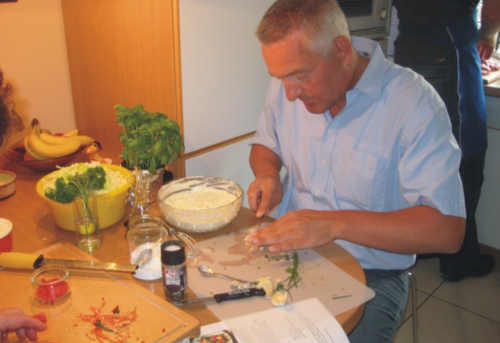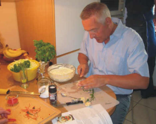 waren, ging es an die Zubereitung der zweiten Vorspeise. Hier kam Wolfgangs Grill zum Tragen.
