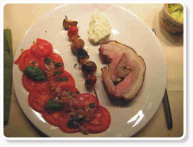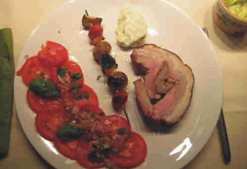 Hauptspeise: Gefüllte Schweinebrust an Tomatensalat mit