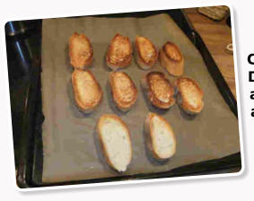 Ciabatta in Scheiben schneiden und goldbraun rösten.
