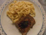 Die Schnitzelchen mit der Sauce und den selbstgemachten Nudeln servieren.