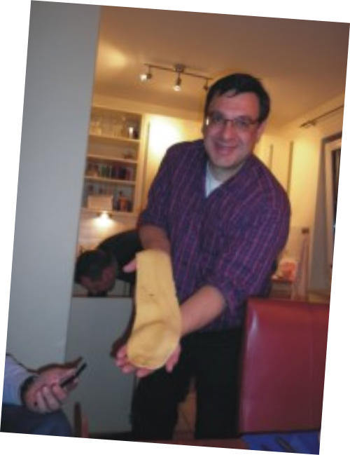 Also haben wir auch probiert mit dieser Teufelsmaschine Nudeln zu machen. Matthias Tepner erschien uns da der Richtige, und