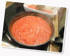 Derweil die Zwiebeln und den Knoblauch in Öl andünsten, Tomaten hinzugeben und alles gut