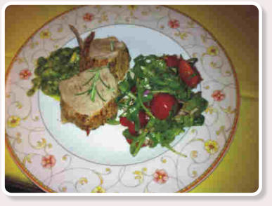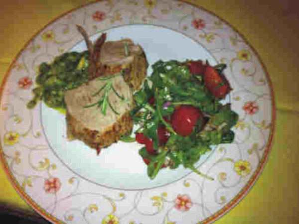 Hauptspeise: Schweinefilet mit Salsa verde und Kirschtomatensalat