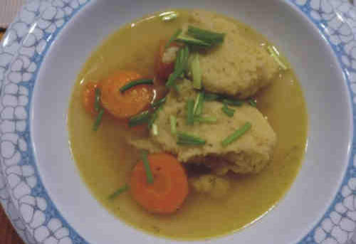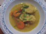 Dann ging es an die Vorspeise, die Grießnockerlsuppe. Wie sich das schon anhört.