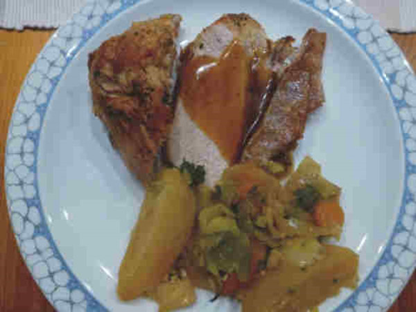 Die Sauce aus dem frisch zubereitetem Gemüse war einfach klasse, und der Braten war zart und saftig. Es war ein