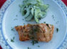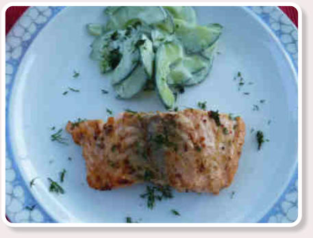 Vorspeise 2: Honig-Senf-Lachs vom Grill auf Wasabigurken