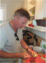 Stefan hatte eingeladen, und da das Wetter wohl schön werden sollte, wollte er grillen. Grillen, immer wieder schön. Wobei wir erst dreimal gegrillt haben. Da es kein Motto gab, wurde alles gegrillt, was der Nachbar wegge- schmissen hatte, grins. Über Schwein, Tomaten, Pfirsich und Lachs wurde alles in der Küche vorbereitet und dann draussen gegrillt. Der Wettergott war uns hold, und so fanden wir uns zur Einstimmung bei einem Gläschen Sekt, daß wir, mit etwas Aperol verfeinert, draussen am Tisch tranken.