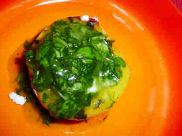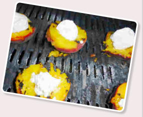 Nachspeise: G e g r i ll t er  Pfirsich  mit  Z i e g e n f r i s c h k ä s e  und  süßem  P e s t o