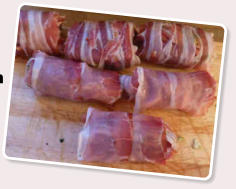 Rezept für 4 Personen 1 Schweinefilet, küchenfertig, ca. 250 g Das Schweinefilet in 4 gleich große Portionen teilen. In jedes Medaillon eine Tasche schneiden. 4 Mini Mozzarellakugeln, 40 g getrocknete Tomaten in Öl eingelegt Mozzarella und getrocknete Tomaten fein hacken. 2 Basilikumzweige, 30 g Pinienkerne, geröstet, Salz, Pfeffer Die Blätter von den Basilikumzweigen streifen und grob zupfen. Zusammen mit den Pinienkernen zu der Mozzarella-Tomaten- Mischung geben und mit Salz und Pfeffer abschmecken. 4 Scheiben Bauchspeck Garn zum Binden Je ein Viertel der Masse in je ein Medaillon füllen,eine Scheibe Speck darum wickeln und mit Küchengarn binden. Salz, Pfeffer Die Medaillons auf dem Grill langsam von beiden Seiten garen, anschließend mit Salz und Pfeffer würzen. Mediterraner Gemüsesalat: 1 Zucchini 1 Aubergine 1 Paprikaschote, rot Zucchini und Aubergine in Scheiben schneiden. Paprika vierteln und vom Kerngehäuse befreien. Alle Gemüsesorten von beiden Seiten grillen, so dass schöne Grillstreifen entstehen. 10 Cocktailtomaten, 1 rote Zwiebel, Cocktailtomaten halbieren. Zwiebel schälen, in feine Streifen schneiden. 10 Mini Mozzarellakugeln Das gegrillte Gemüse in mundgerechte Stücke schneiden und mit Tomaten, Zwiebelstreifen und Mini Mozzarellakugeln mischen. 40 ml Balsamico bianco 80 ml Olivenöl con Limone Salz, Pfeffer, 1 EL Puderzucker Blätter von 3 Basilikumzweigen Alle Zutaten verrühren und den Gemüsesalat damit marinieren. Die Basilikumblätter grob zupfen und zum Schluss untermischen.