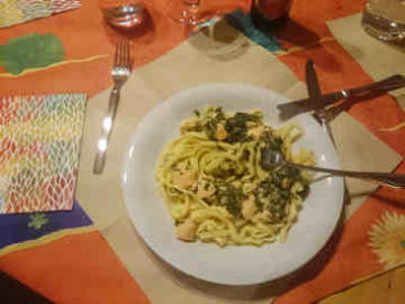 Außerdem hatten wir viel zu viel Spinat gemacht, warum auch immer. Friedhelm meinte zu der Sauce