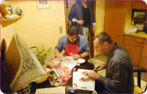 Die Zubereitung der Hauptspeise war eine Gemeinschaftsarbeit von Wolfgang, Stefan und Matthias T. Die Jungs haben