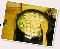 Brühe und Sahne einrühren, aufkochen lassen und ca. 5 Minuten leicht köcheln lassen. Spinat