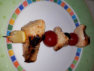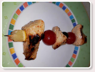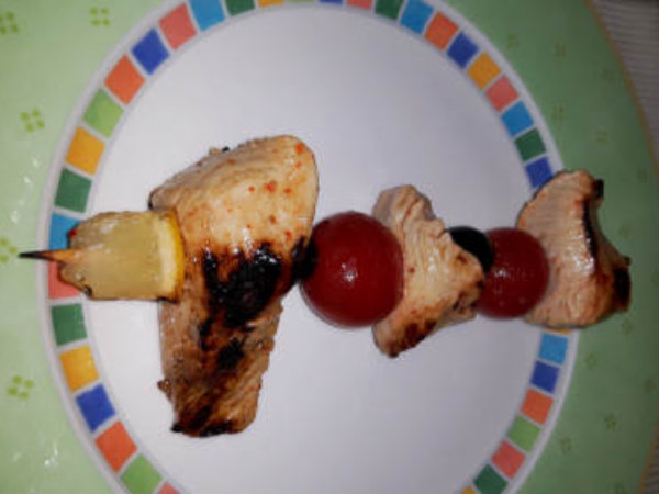 2 Gang: Putenspieße mit Tomaten und Oliven
