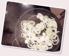Zwiebel bei großer Hitze anbraten und kräftig salzen und pfeffern. Mit Honig beträufeln