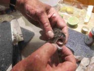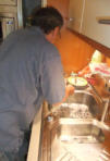 richtigen Köche für den ersten Gang. Die Forellen, ganze Forellen, wollten sich absolut nicht filletieren lassen. Es wurde ein
