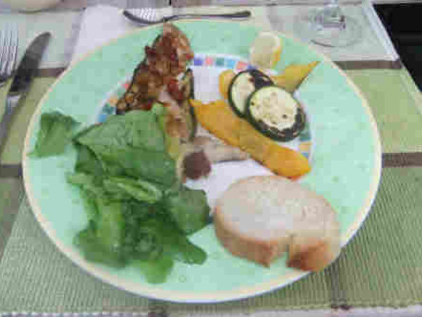 Jetzt schaut euch mal die Speisenfolge dieses abends an. Und das, außer dem Nachtisch, alles auf dem Grill.