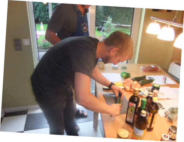 Edgar hatte die verschiedenen Kochgruppen zusammengestellt, und Thomas und ich bereiteten den ersten Gang zu. Genau die