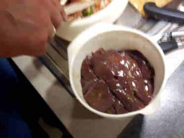 Karin hatte die Leber eingelegt, und eine Menge gekauft, das 20 Männer satt werden konnten. Ich sagte